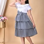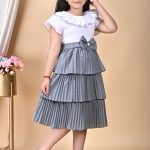 Girl’s Calf Length pleating Frock With Grey Bottom